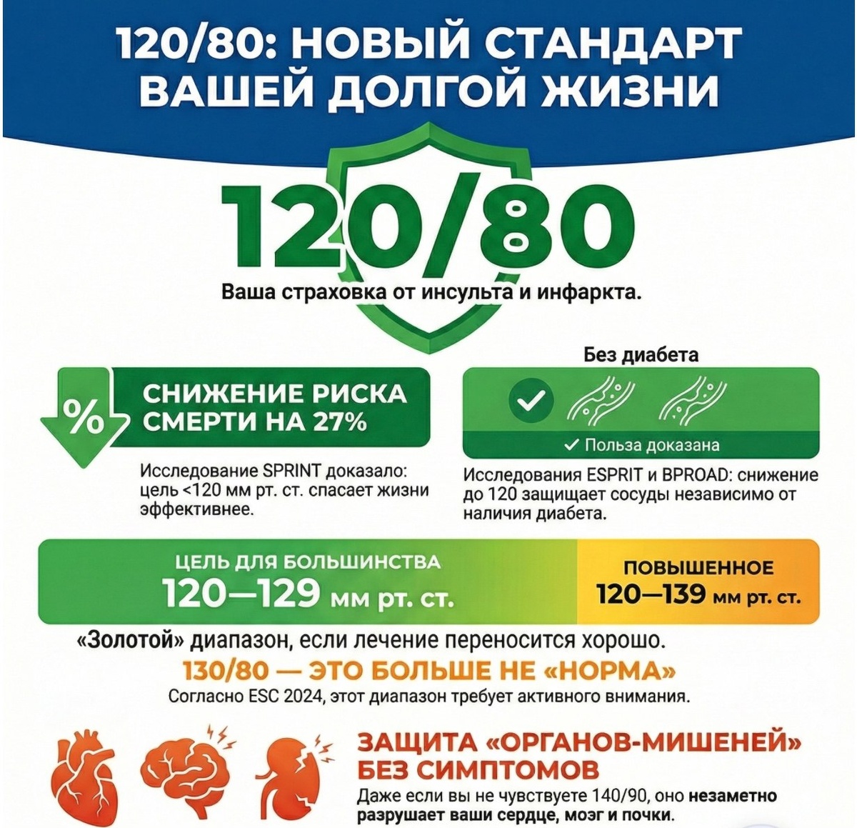 которого являлось изучение влияния интенсивного снижения систолического артериального давления (АД) на сердечно-сосудистые исходы у пациентов высокого риска. ▌ Основные цели исследования Целью исследования было определить, является ли снижение систолического АД ниже традиционно рекомендуемого уровня безопасным и эффективным способом предотвращения основных сердечно-сосудистых осложнений, включая инфаркт миокарда, инсульт, острую почечную недостаточность и общую смертность. ▌ Участники исследования В исследовании приняли участие около 9300 взрослых пациентов старше 50 лет с высоким риском развития сердечно-сосудистых заболеваний, но без сахарного диабета. Пациенты были случайным образом распределены в две группы: - Стандартная группа: Цель лечения — поддержание систолического АД менее 140 мм рт. ст. - Интенсивная группа: Цель лечения — поддержание систолического АД менее 120 мм рт. ст. ▌ Результаты исследования Основные выводы исследования включают следующее: 1. Сердечно-сосудис