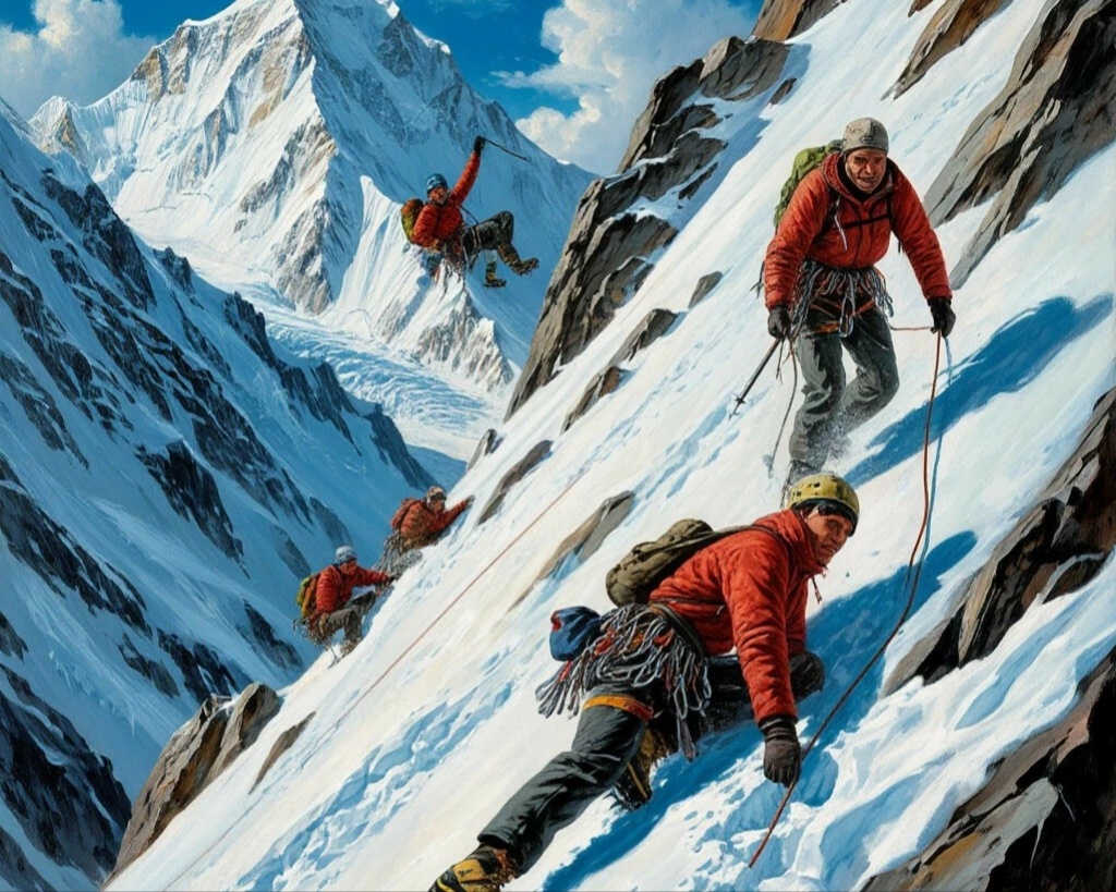 Их движение утром 11 сентября 1931 года нельзя было назвать подъемом. Это было ползание. Низко нагнув головы, упираясь руками в колени, они не шли — они перемещали свое тело на несколько сантиметров вверх, затем останавливались, судорожно хватая воздух. Снег был твердым, колючим. Ледорубы впивались в него со скрежетом. Никакого героизма в позах, только предельная концентрация и агония. Шаг. Остановка. Взгляд наверх. Еще шаг.