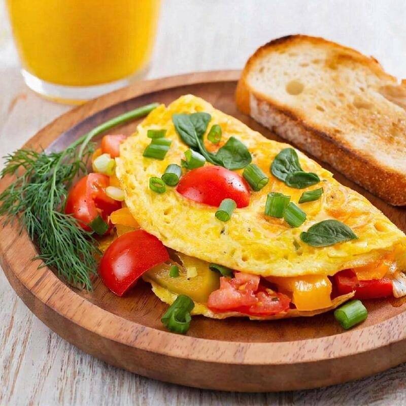 Рецепт полезного завтрака на 235 ккал ▌ Омлет с овощами Ингредиенты: 1. Яйца куриные — 2 шт. (~140 ккал) 2. Молоко обезжиренное — 2 ст.л. (~18 ккал) 3. Шпинат свежий — горсть (~7 ккал) 4. Томаты черри — 5 шт. (~25 ккал) 5. Оливковое масло — 1 ч.л. (~45 ккал) 6. Соль, перец — по вкусу (без учета калорий) Приготовление: 1. Взбейте яйца с молоком. 2. Добавьте нарезанные помидоры и шпинат. 3. Разогрейте сковороду с оливковым маслом. 4. Выложите смесь яиц и овощей на сковороду. 5. Готовьте около 5 минут на среднем огне, пока омлет не станет плотным. Поделись 🫵 Гидом Здоровья