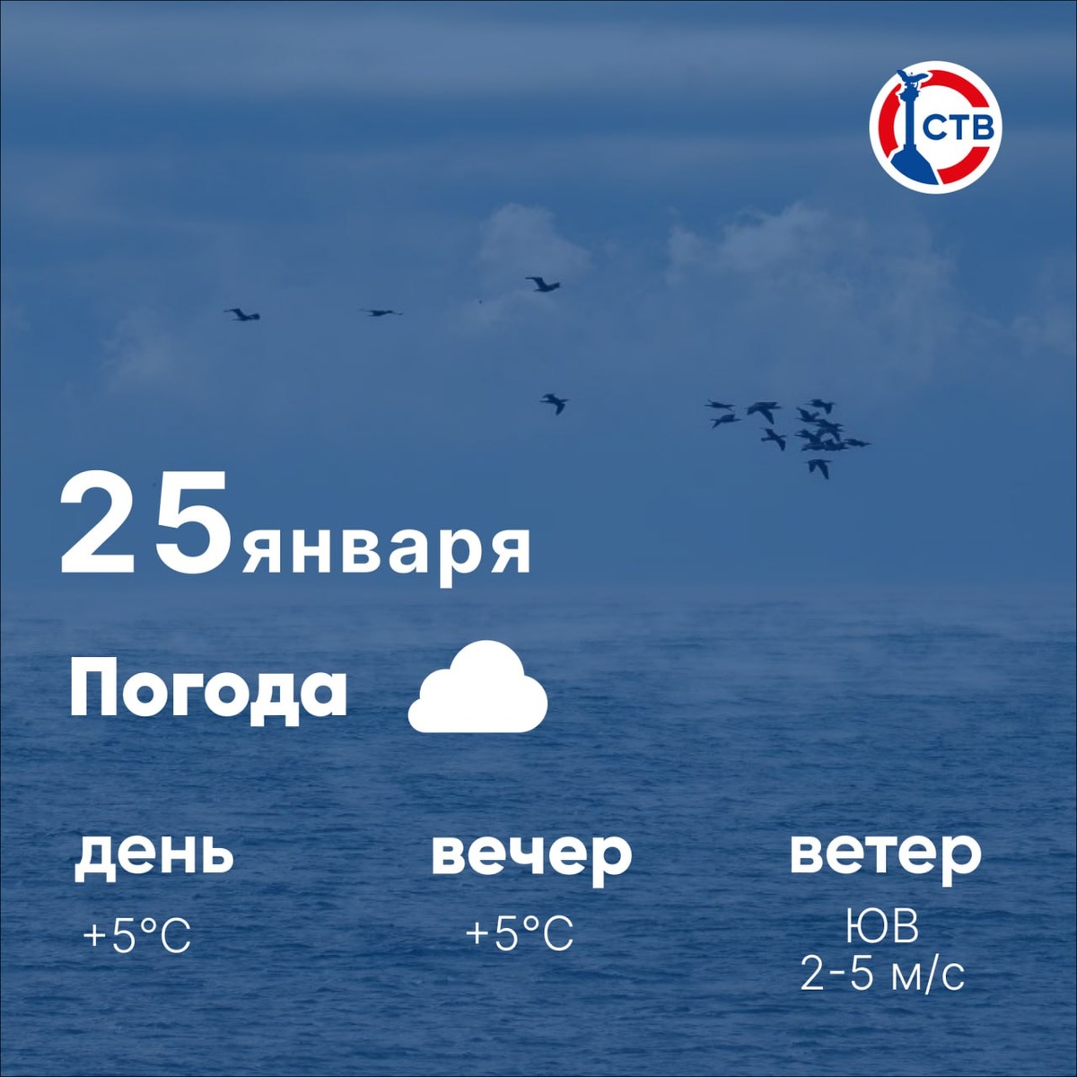 Днём и вечером около +5°C, так что тёплая куртка не помешает. Море держит +9°C — прохладное и спокойное. Отличный день для тёплого шарфа, кофе и неспешных прогулок. 📺 СТВ в MAX