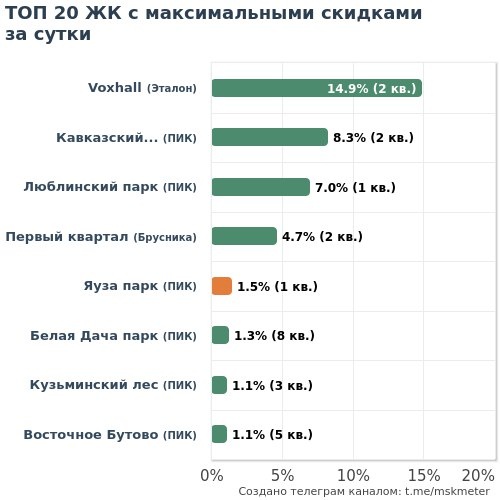 🟩 Честные скидки: 7 ЖК (23 кв.) 🟧 Маркетинг скидки: 4 ЖК (10 кв.) 💎 МАКСИМАЛЬНАЯ ЭКОНОМИЯ 🏆 Эталон • Voxhall ├🔻5.6M → 37.7M • 2-к 73м² └🔻1.9M → 12.5M • Студия 23м² 🥈 ПИК • Кавказский бульвар 51 ├🔻2.0M → 24.2M • 3-к 73м² └🔻230к → 22.3M • 2-к 58м²❗️ 🥉 ПИК • Люблинский парк └🔻1.4M → 20.2M • 2-к 60м² 4️⃣ Брусника • Первый квартал ├🔻743к → 16.0M • 3-к 90м² └🔻345к → 8.1M • 1-к 36м² 5️⃣ ПИК • Кузьминский лес ├🔻251к → 22.4M • 3-к 68м² ├🔻251к → 22.4M • 3-к 69м² └🔻250к → 22.1M • 3-к 68м² 🔑 САМЫЕ ДОСТУПНЫЕ 🏆 Брусника • Первый квартал ├🔻345к → 8.1M • 1-к 36м² └🔻743к → 16.0M • 3-к 90м² 🥈 ПИК • Белая Дача парк ├🔻113к → 8.8M • 1-к 31м² ├🔻113к → 8.9M • 1-к 31м² └🔻122к → 9.4M • 1-к 31м² 🥉 ПИК • Восточное Бутово ├🔻110к → 9.8M • 2-к 50м² ├🔻109к → 9.9M • 2-к 50м² └🔻112к → 10.0M • 2-к 51м² 4️⃣ Эталон • Voxhall └🔻1.9M → 12.5M • Студия 23м² 5️⃣ ПИК • Люблинский парк └🔻1.4M → 20.2M • 2-к 60м² ❗️— лоту меньше месяца 👇 Полная статистика: 📲 В Telegram | 🌐 На MskMete