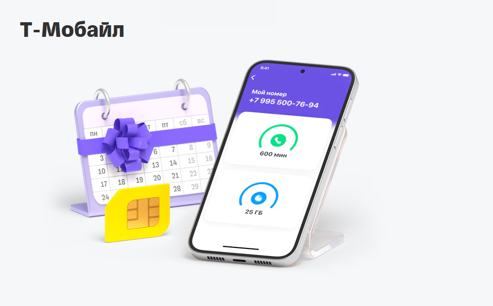 СберМобайл, Газпром Мобайл и T-Мобайл как раз из этой категории. У каждого из них нет собственных вышек — связь предоставляется через сети крупных операторов, поэтому качество покрытия остаётся на привычном уровне. При этом тарифы обычно дешевле, а условия — прозрачнее: без навязанных услуг и сложных мелких шрифтов. Т-Мобайл — это виртуальный оператор связи от Т-Банка. У него нет собственных вышек: связь работает на сетях МТС, поэтому по покрытию он почти не уступает «большим» операторам. Тариф с 1200 минут и 25 гб обойдется в 286 рублей*
