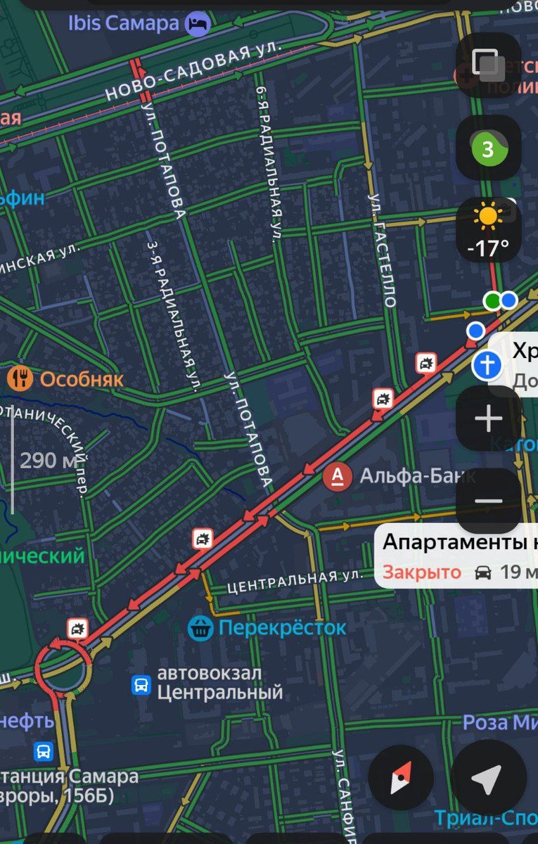 Первая авария случилась на пересечении с улицей Советской Армии. Судя по кадрам очевидца, белый седан KIA потерял заднее левое колесо и заднюю дверь. Второй инцидент произошел совсем рядом, на пересечении с улицей Потапова. Автомобиль Renault столкнулся с BMW. Движение в настоящий момент затруднено. Водителям следует выбирать альтернативные маршруты. 📸 Елизавета Молошник/Яндекс Карты ГТРК Самара MAX lВК lОК lСАЙТ 🔹🔹🔹🔹🔹🔹🔹🔹🔹🔹