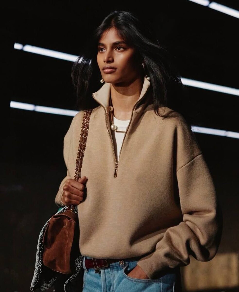 Мода противоречива: то, что еще вчера было скучной вещью из базового гардероба, сегодня – хит. Так случилось в этом сезоне с джемпером на молнии до середины груди. В нем модель Бавита Мандава открыла шоу Chanel, и теперь подобные свитеры в топе поисковых запросов Google, и в гардеробе у каждого второго фешн-блогера. Очень простая вещь, и супер универсальная – такое мы любим. Как носить? - в самом будничном образе с белой рубашкой и голубыми джинсами. – с асимметричной юбкой миди. - также под него можно запросто надеть рубашку, и носить в офис с классическими брюками.