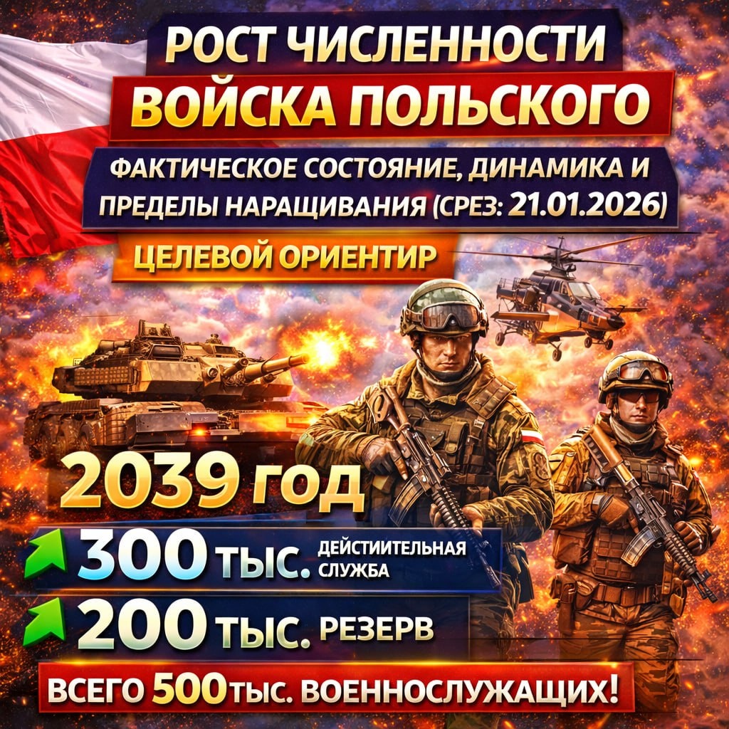 Фактическое состояние, динамика и рост численности ВС Польши (срез: 21.01.2026