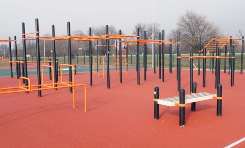 Техническое задание предусматривало обустройство универсальной площадки размером 32×19 метров для занятий баскетболом, футболом и волейболом, а также зоны воркаута с резиновым покрытием 20×12 метров. Проект включал установку уличных