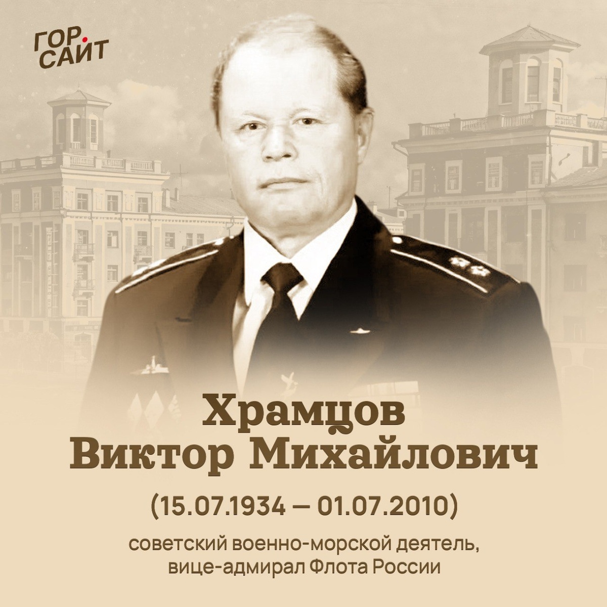 Храмцов Виктор Михайлович — советский военно-морской деятель, вице-адмирал Флота России. Виктор Михайлович Храмцов родился в 1934 году в Полевском. После семи классов школы №1 в 1949 году он поступил в Свердловский горно-металлургический техникум имени И.И. Ползунова. В 1953 году, окончив техникум, Виктор начал работать бригадиром на заводе Министерства среднего машиностроения. В 1954 его призвали в армию. Однако из части, где он служил, не отпускали в Военно-морское училище. Тогда он обратился в редакцию газеты «Комсомольская правда» с просьбой помочь ему стать моряком. В итоге в 1959 году Виктор Михайлович окончил Военно-морское училище имени М.В. Фрунзе и был назначен командиром рулевой группы БЧ-1 на лодке «С-283». Позже он стал командиром БЧ-1. С 1962 по 1979 год Виктор служил в 3-й дивизии 1-й флотилии атомных подводных лодок Северного флота. В 1963 году, будучи штурманом подводной лодки «К-181», он успешно выполнил задачу и привел лодку на Северный полюс, где она впервые и ед