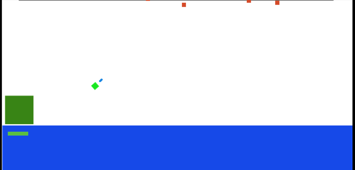 В предыдущей статье я показал вам первый набросок игры, который создал за час. Посмотреть его можно здесь. Однако визуальная составляющая была очень сырой. Поэтому я использовал некоторые инструменты: Шедеврум, Corel Draw и бесплатный AI-редактор изображений Pixelcut. В основном я хотел просто освежить изображение, но пришлось немного изменить события и механику, иначе результат получился бы неудовлетворительным. Вот как это выглядело раньше. Обратите внимание: выстрел происходит из зеленого квадрата. После некоторых изменений игра приобрела новый вид. Зелёный квадрат теперь стал турелью, хотя изначально планировалось сделать его истребителем. Однако, когда я начал накладывать картинку, возникли две проблемы. В первом варианте истребитель летел прямо, как я и хотел, но тогда было непонятно, откуда и почему летят пули. Во втором варианте истребитель начинал вращаться и улетать по всей карте. Хотя такой вариант тоже можно было оставить, в будущем истребители могли бы мешать управлению. П
