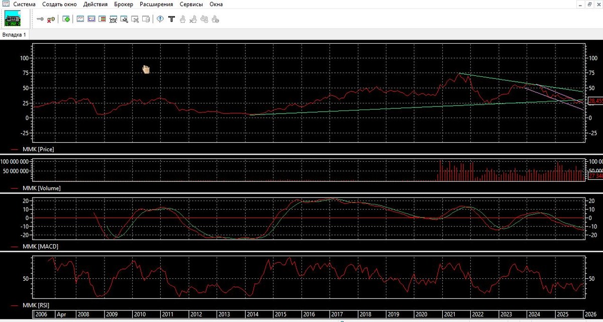 На сайте БКС ЭКСПЕРТ есть статья: «Аутсайдеры на российском рынке акций в 2025», рассказывается о несколько акций. Здесь выставлю информацию, только по акции ММК: «Подробнее о металлургах: НЛМК, ММК, Северсталь