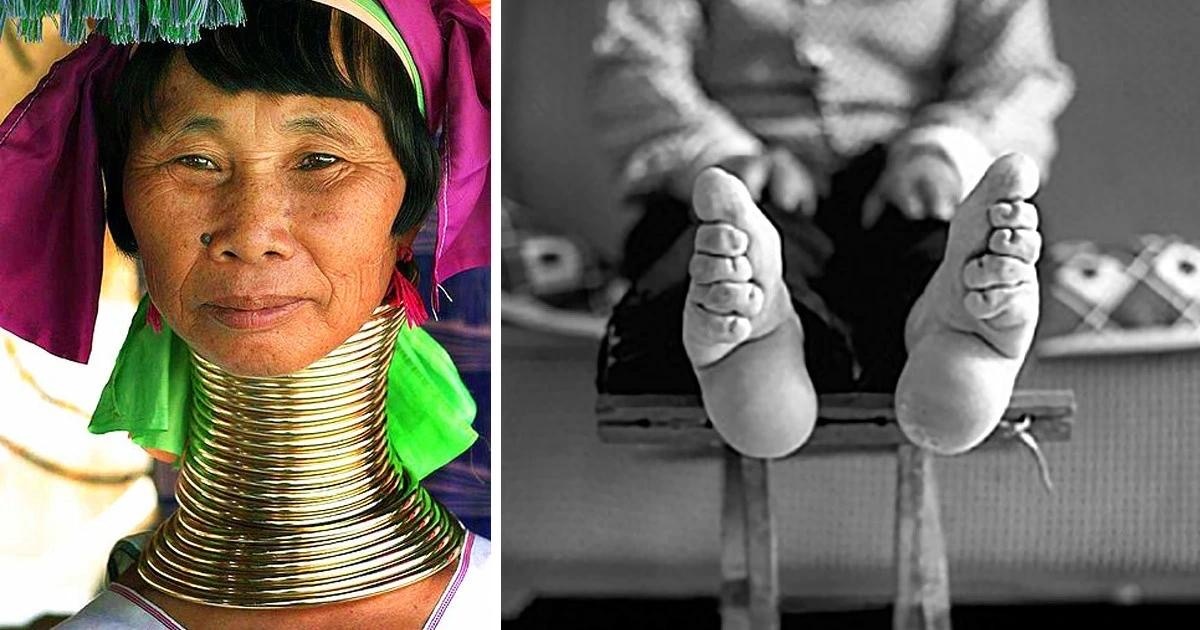 На протяжении почти тысячи лет маленькая стопа считалась эталоном женской красоты. Девочкам с 4–9 лет ломали кости стопы и туго бинтовали ноги, чтобы они поместились в обувь длиной около 10 сантиметров. Процесс длился годами и сопровождался постоянной болью, инфекциями и инвалидностью. Но без этого девушка теряла шансы на удачный брак.