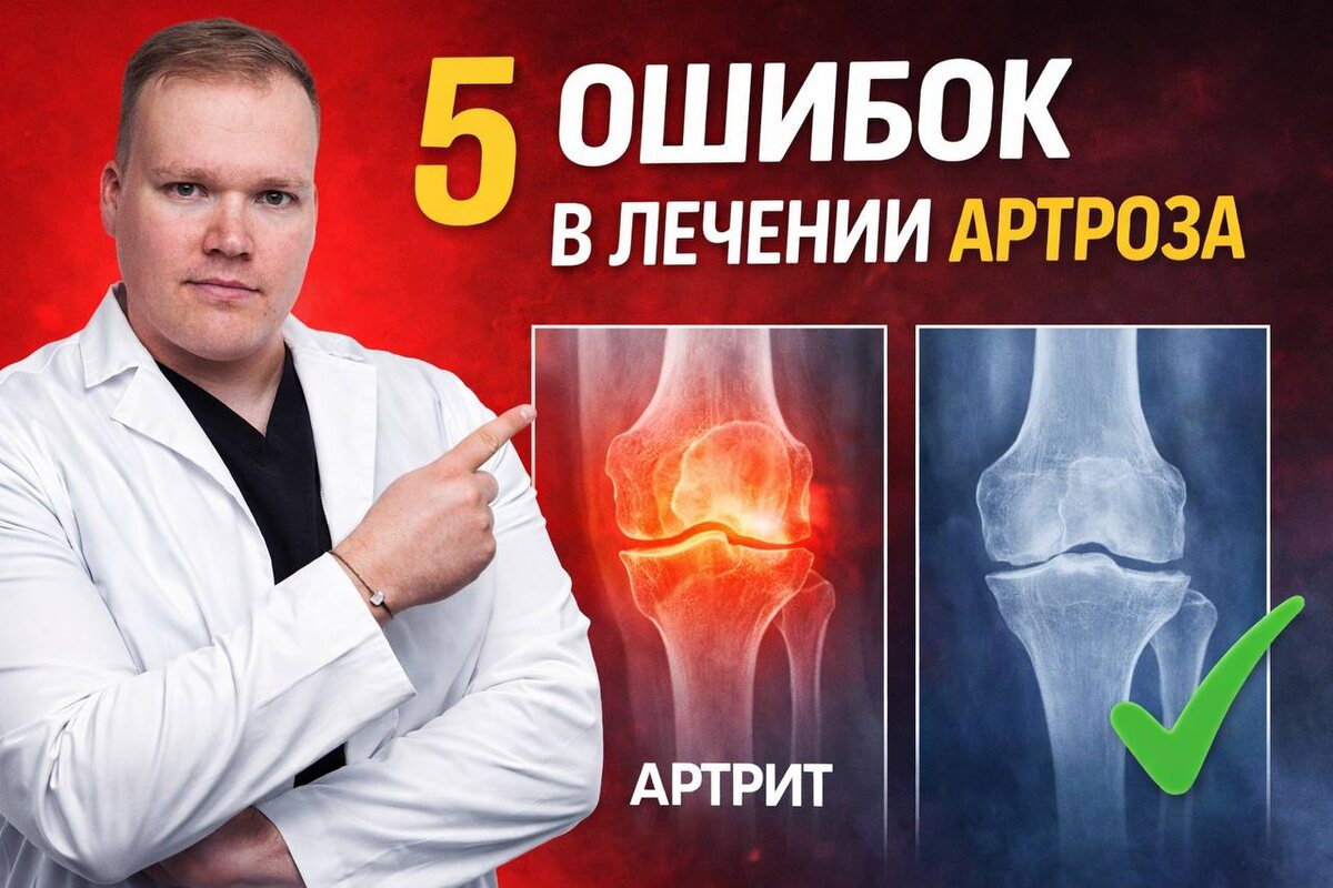 Вижу это каждую неделю на приёме. Человек годами мучается с артрозом, пробует всё подряд... а колено болит ещё сильнее. Разберём 5 главных ошибок, которые превращают управляемое состояние в хроническую беспомощность 1️⃣«Больной сустав нужно беречь и не нагружать» Самая распространённая и самая разрушительная. Логика понятна: болит — дай покой. Так советуют «знающие» соседи. Только наука показывает обратное: всего 21 день постельного режима вызывают деградацию коллагена хряща даже у здоровых людей. При артрозе хрящ недополучает питание (он питается через движение!), мышцы слабеют, боль усиливается. Правда: Артроз лечится дозированным движением, а не покоем. 2️⃣Ошибка №2: Пить обезболивающие годами Классика: начинает с одной таблетки в неделю. Через год — по 3-4 в день. НПВС снимают боль, но: ▪️НЕ останавливают разрушение хряща ▪️НЕ улучшают функцию Гайдлайны 2024: только короткие курсы при обострениях. Правда: Таблетки — симптоматическая помощь. Основное лечение — движение, укрепление м