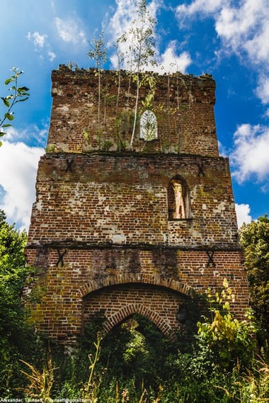 Правдинск) был основан на правом берегу реки Лава, на месте укрепленного прусского городища Капостене. Литовское нападение в 1347 застало слабый гарнизон Гросс Вонсдорфа врасплох. Замок был сожжен, а гарнизон уничтожен. Понимая стратегическую важность крепости, Орден принимает решение о строительстве каменного замка. Дата постройки замка в камне - 1356 г. С 1348 г. Гросс Вонсдорф был центром каммерамта и подчинялся Инстербургу. С 1702 по 1945 г. Гросс Вонсдорф принадлежал семье фон Шрёттер. В 1790 г. в замке случился пожар, в результате которого обвалилась крыша надвратной башни, которая позже была реставрирована. Имение семьи фон Шрёттер часто посещал Иммануил Кант. Пожар 1830 г. принес большие разрушения. Крепостные постройки больше не восстанавливались. За исключением башни все они постепенно разбирались на стройматериалы. После 1945 г. надвратная башня была в хорошем состоянии, но никак не использовалась и начала постепенно разрушаться. На сегодняшний день от замка остались руины