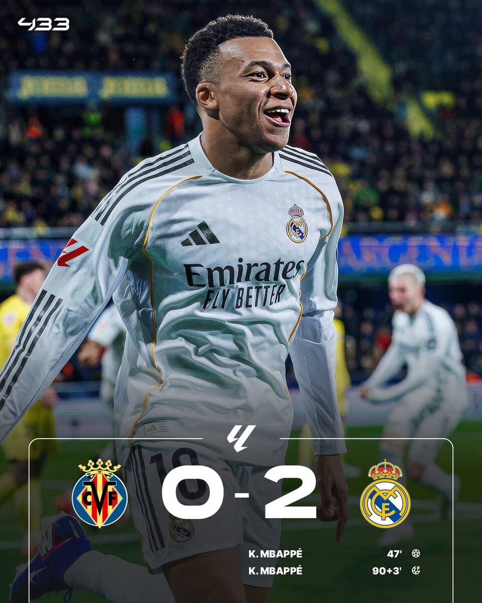 ! Мадридцы взяли 3 очка у «Вильярреала», идущего в зоне ЛЧ. Оба мяча на счету Мбаппе – теперь у него 21+4 в 20 матчах этой Ла Лиги. Команда Арбелоа опережает «Барсу» на 2 очка, но завтра каталонцы смогут вернуть лидерство. ⚽️ Подписывайтесь на нас в MAX