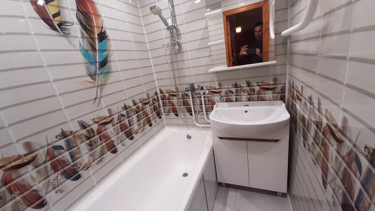 Итак, что для этого понадобится? Нужно замерить площадь стен и потолка (+10% площади на обрезки) и при покупке панелей определиться с дизайном. Вариантов расцветок множество. Есть даже панели с панно (картинами) и имитирующие швы в плитке. Так что, любой гость, зайдя к вам в ванную, не сразу поймет, что это ПВХ панели. Если только присмотреться.