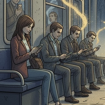 Прямо передо мной сидел парень лет двадцати, с наушниками-затычками. Он смотрел видео с котиками в ТикТоке. Его взгляд был стеклянным. Каждые пять секунд от его макушки отделялись крошечные, сияющие частицы. Они были похожи на золотую пыльцу или искры от бенгальского огня, только летели они медленно, словно в воде. Это были его секунды. Время, которое он не использовал для жизни, эмоций или мыслей. Время-пустышка.