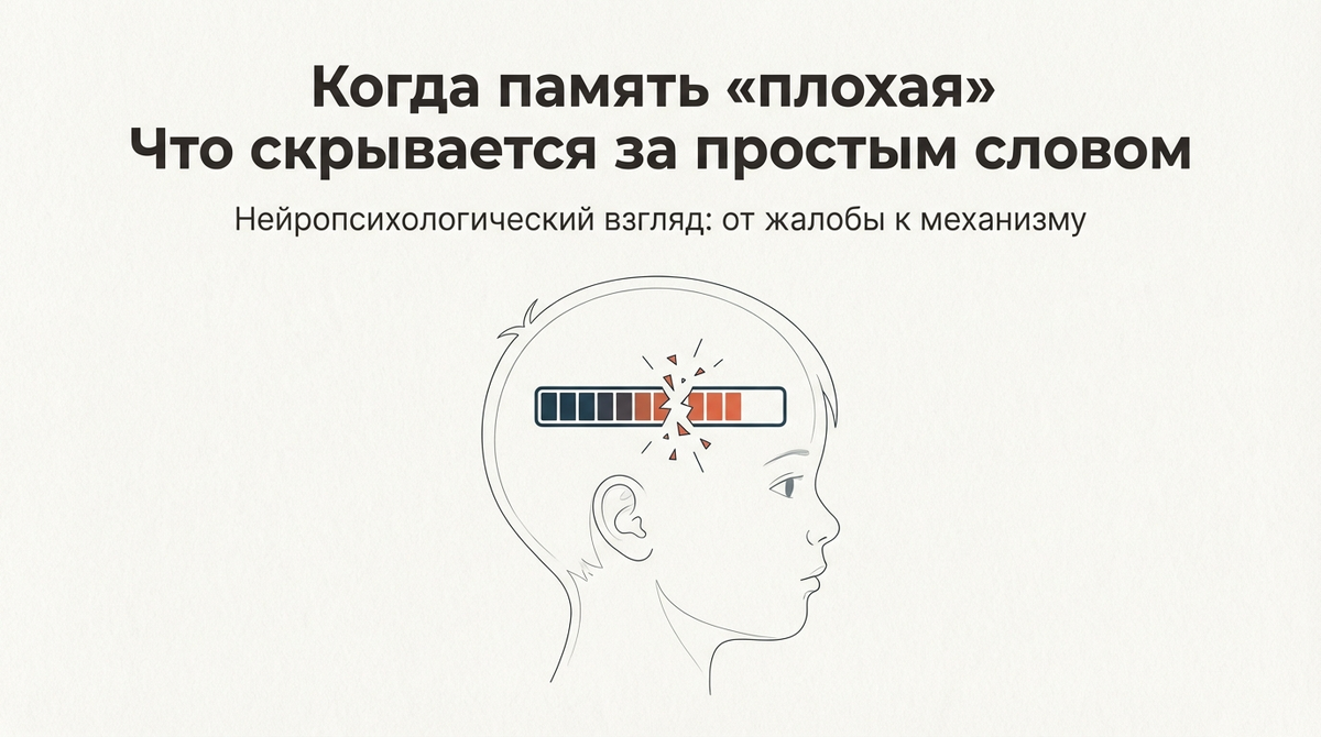 Когда мы говорим «плохая память» — это не диагноз и даже не описание проблемы. Это только самое начало разговора. Потому что за этими двумя словами может скрываться добрый десяток (на самом деле больше) совершенно разных механизмов дисфункции. И каждый из них требует своего подхода, своей диагностики, своей коррекции.