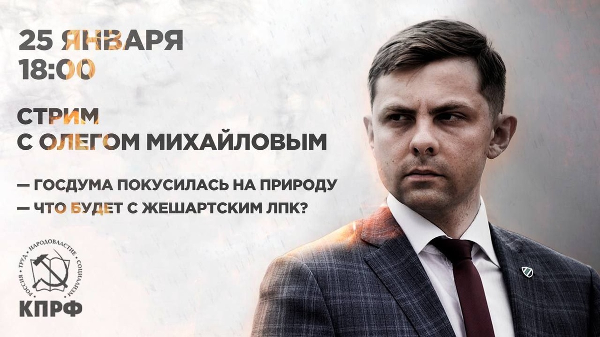 ⚡️ ❗️Сегодня в 18 часов Олег Михайлов проведёт эфир со своей страницы "ВКонтакте", где обсудит вместе со зрителями важные темы прошедшей недели ✅️ ➡️в ГосДуме начали обсуждать законопроект об уничтожении охраняемых природных территорий. ➡️Жешартский ЛПК на грани банкротства. Что делать? Присоединяйтесь vk.com/mikkomi и пишите свои вопросы 👍
