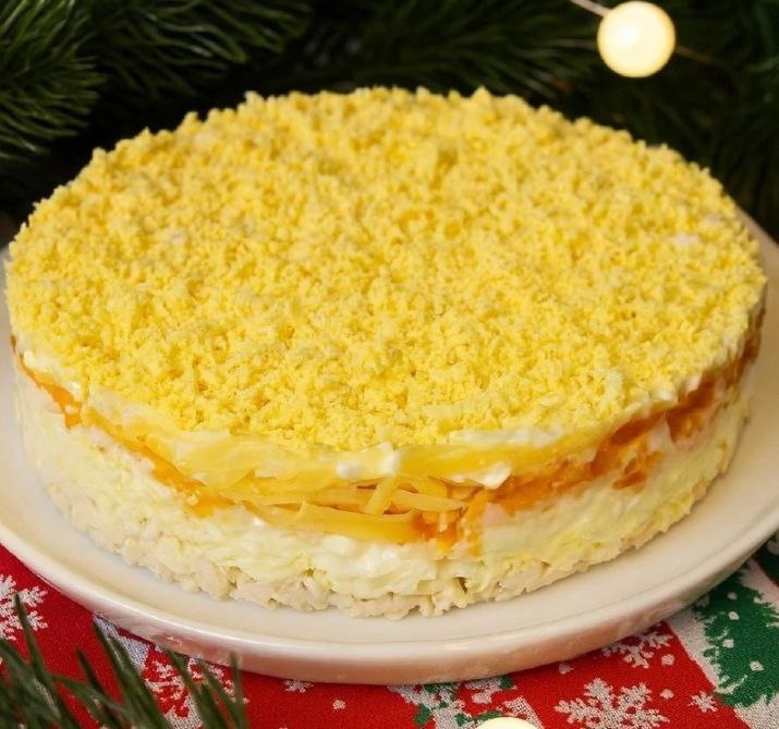 ИНГРЕДИЕНТЫ: ✅ Горбуша консервированная — 1 банка ✅ Сыр — 200 г ✅ Лук репчатый — 1 шт. ✅ Морковь варёная — 2 шт. ✅ Картофель варёный — 4 шт. ✅ Яйца — 6 шт. ✅ Майонез — по вкусу ✅ Чёрный молотый перец — по вкусу ПРИГОТОВЛЕНИЕ: 1. Картофель натереть на крупной тёрке, выложить первым слоем, слегка поперчить и смазать майонезом. 2. Консервированную горбушу хорошо размять вилкой, предварительно полностью слив жидкость. Выложить вторым слоем. Майонезом не смазывать. 3. Лук мелко нарезать и распределить поверх рыбы. 4. Сыр натереть (лучше на мелкой тёрке), выложить слоем и промазать майонезом. 5. Морковь натереть на крупной тёрке, выложить следующим слоем и смазать майонезом. 6. Отдельно натереть белки (крупная тёрка) и распределить поверх моркови. Снова смазать майонезом. 7. Желтки натереть на мелкой тёрке и выложить сверху — это финальный красивый слой. 8. Убрать салат в холодильник на 3–4 часа, а лучше — на ночь, чтобы он хорошо пропитался. СОВЕТЫ: ✅ Чтобы салат держал форму, тщательно
