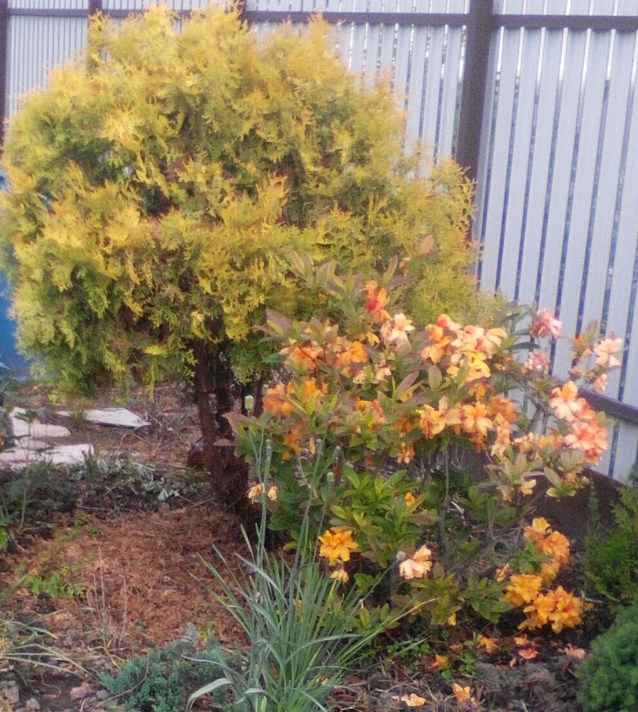 Чупачупие-это от слова "чупа-чупс". А еще в моем лексиконе есть слово "чупачуплю". Это значит, делаю моим растениям стрижку а-ля чупа-чупс: шарик на тонкой палочке. Идея так стричь почти все подряд появилась не из-за безумной любви к карамельке или ее форме. Просто в один прекрасный момент я поняла: на участке становится катастрофически мало места: негде ходить (растение мешается), негде посадить новую хотелку (опять мешаются). Первой под горячую руку с секатором попалась туя. На фото она уже немного подстрижена внизу, чтобы воткнуть в ноги хосты. До стрижки на этом месте росла в прямом смысле копна сена. Даже цвет соответствовал (туя желтолистная). Росла эта туя в три ствола, их на фото видно. Лиха беда начало. Тем более,если в мастере проснулся азарт. Результат этого азарта-следующее фото: Вы уже видите,сколько всего уместилось под чупиками (их тут три-по числу стволов)?.Начало положено! А эта гортензия (Ванила Фрайз) мешала ходить. Хорошо если хлестнет сухой веткой-перетерпишь. А