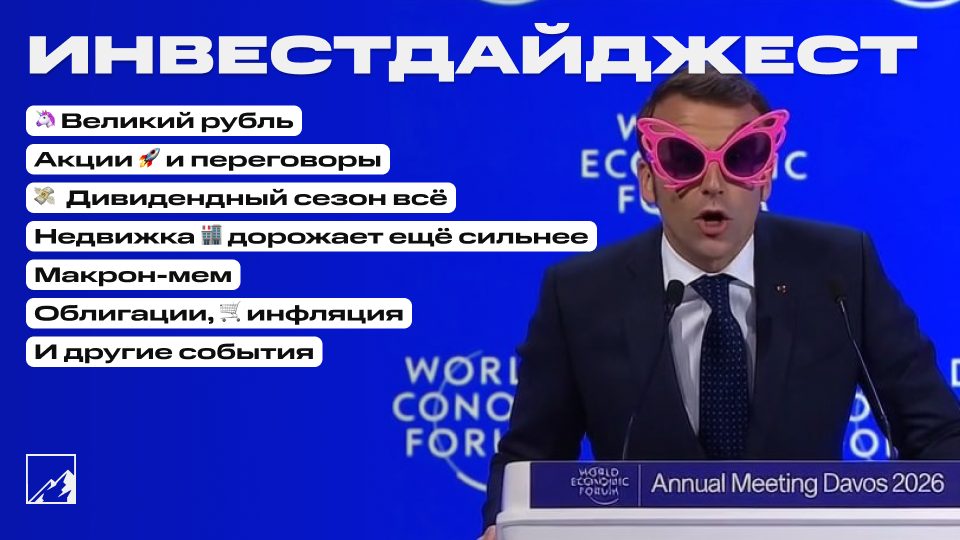 Пока эксперты кусают локти из-за того, что не умеют прогнозировать курс рубля, рубль продолжает укрепляться. Цены растут! Даже на недвижку и на акции, но не на облигации. Макрон стал классным мемасом. И вы все классные, вот и ловите свежий дайджест. Это легендарный еженедельный дайджест, который выходит в моём телеграм-канале, на который приглашаю обязательно подписаться, чтобы ничего не пропускать, там много топового контента. Эксперты опять облажались, а великий рубль укрепился. Изменение за неделю: 78,62 → 75,5 ₽ за доллар (курс ЦБ 77,83 → 75,92). Юань 11,15 → 10,85 (ЦБ 11,15 → 10,87). С 2023 года такого курса не было. У нас очередные переговоры и очередной рост. Итоговое изменение IMOEX с 2 733 до 2 777. Не так уж и сильно инвесторы верят в лучшее. РТС: 1 106 → 1 152. Спасибо укреплению рубля. Уиткофф сказал, что «переговоры были очень конструктивными, и были намечены планы продолжить переговоры на следующей неделе в Абу-Даби». Будем ждать. А Макрон просто надел мемные очки и сам с