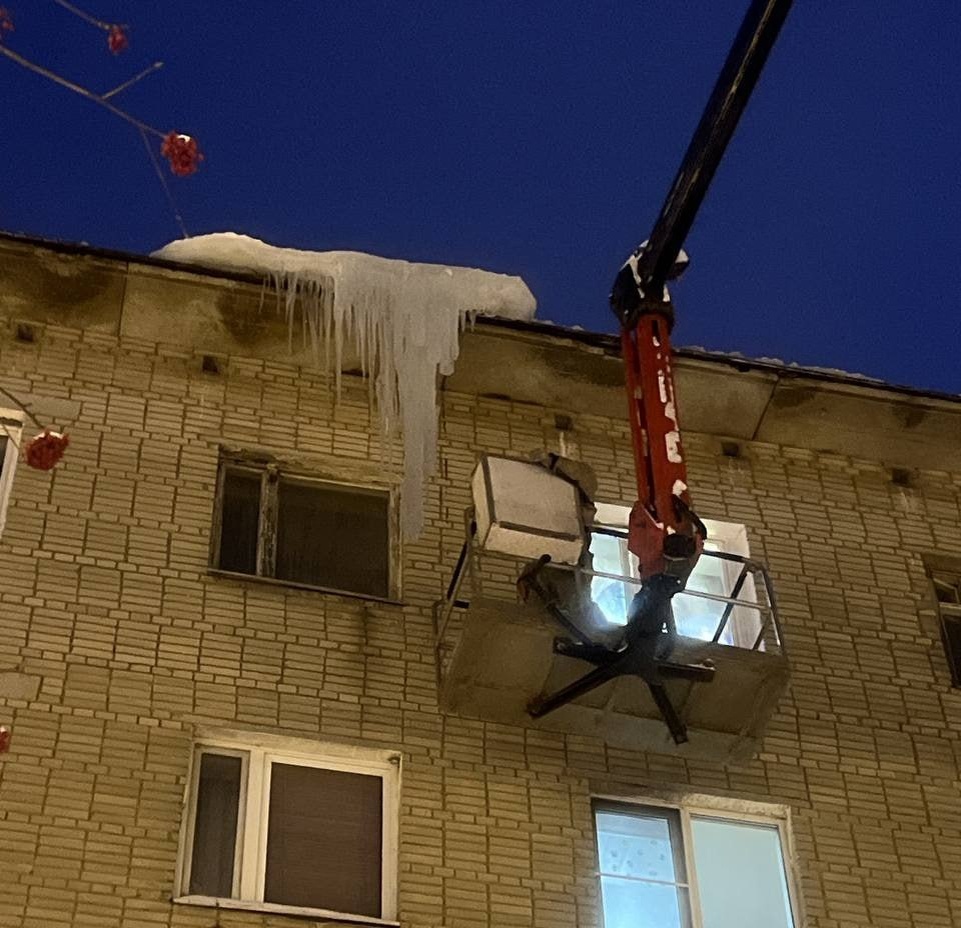 На доме Гагарина 52/9 провели очистку крыши от снега и наледи