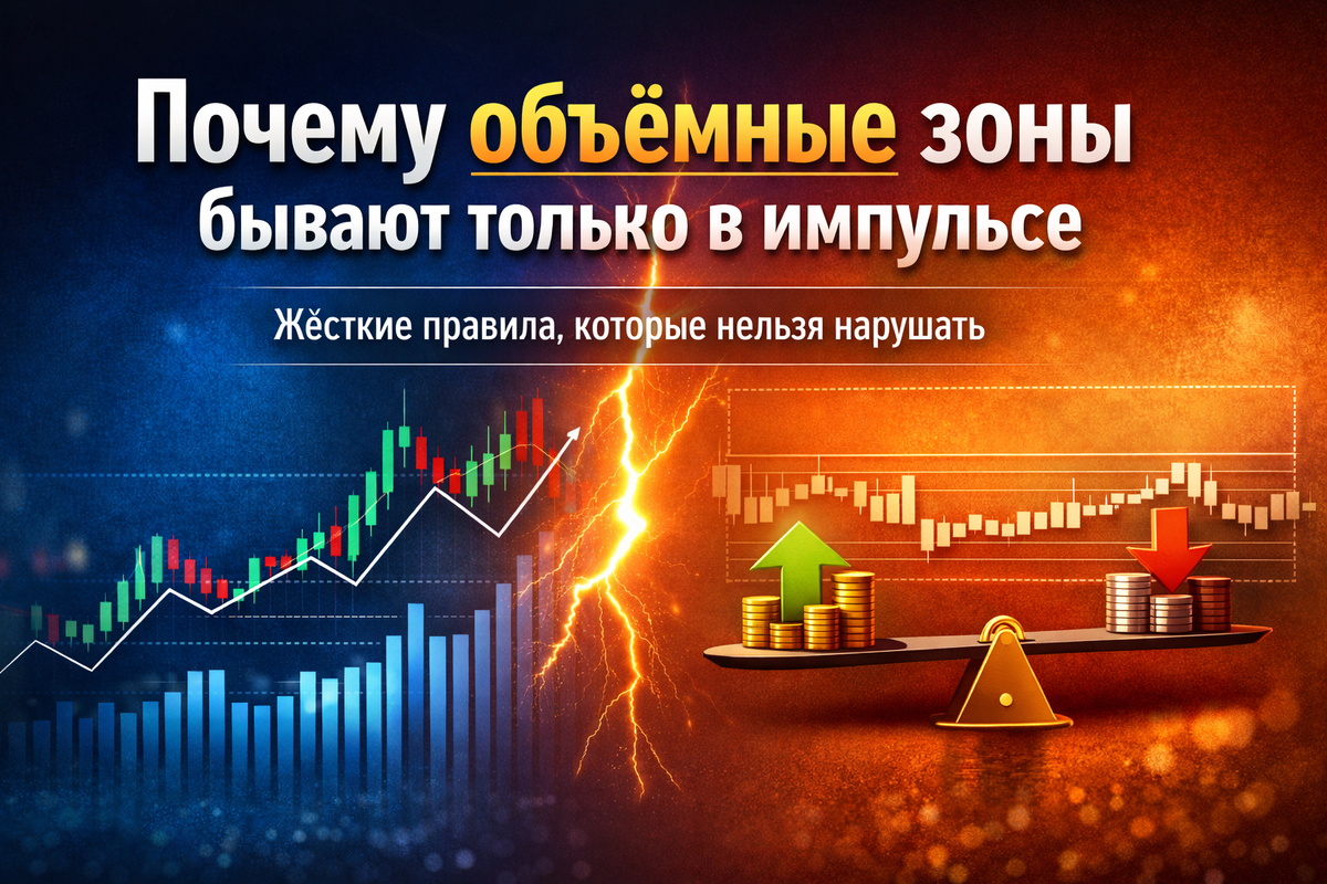 Автор: Роман, трейдер с опытом 15 лет. Заходите на мой канал в ТГ https://t.me/+sxeVquLQVToyOWEy В любой системе есть правила, которые поначалу воспринимаются как слишком жёсткие. Они ограничивают свободу интерпретаций — и именно поэтому вызывают сопротивление. Но чаще всего такие правила и удерживают трейдера от типовых ошибок. ⚙️ Одно из ключевых правил “Системного трейдинга”: Объёмные зоны существуют только в фазе импульса.