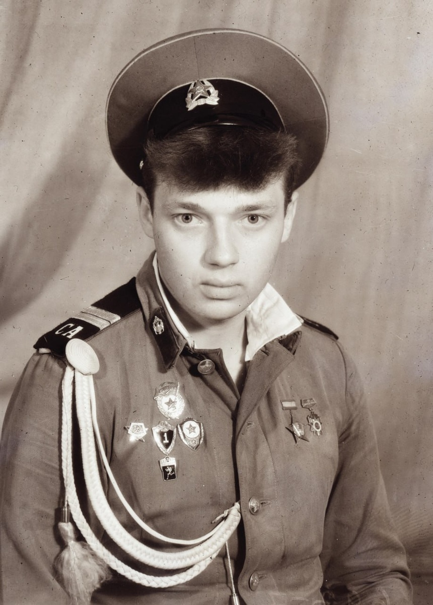 Дембель в закрытом кителе с аксельбантом и полным набором всех доступных знаков) Источник: отсканированная фотография из личной коллекции. #фото #младший_сержант #инженерне_войска #дембель #Советская_армия