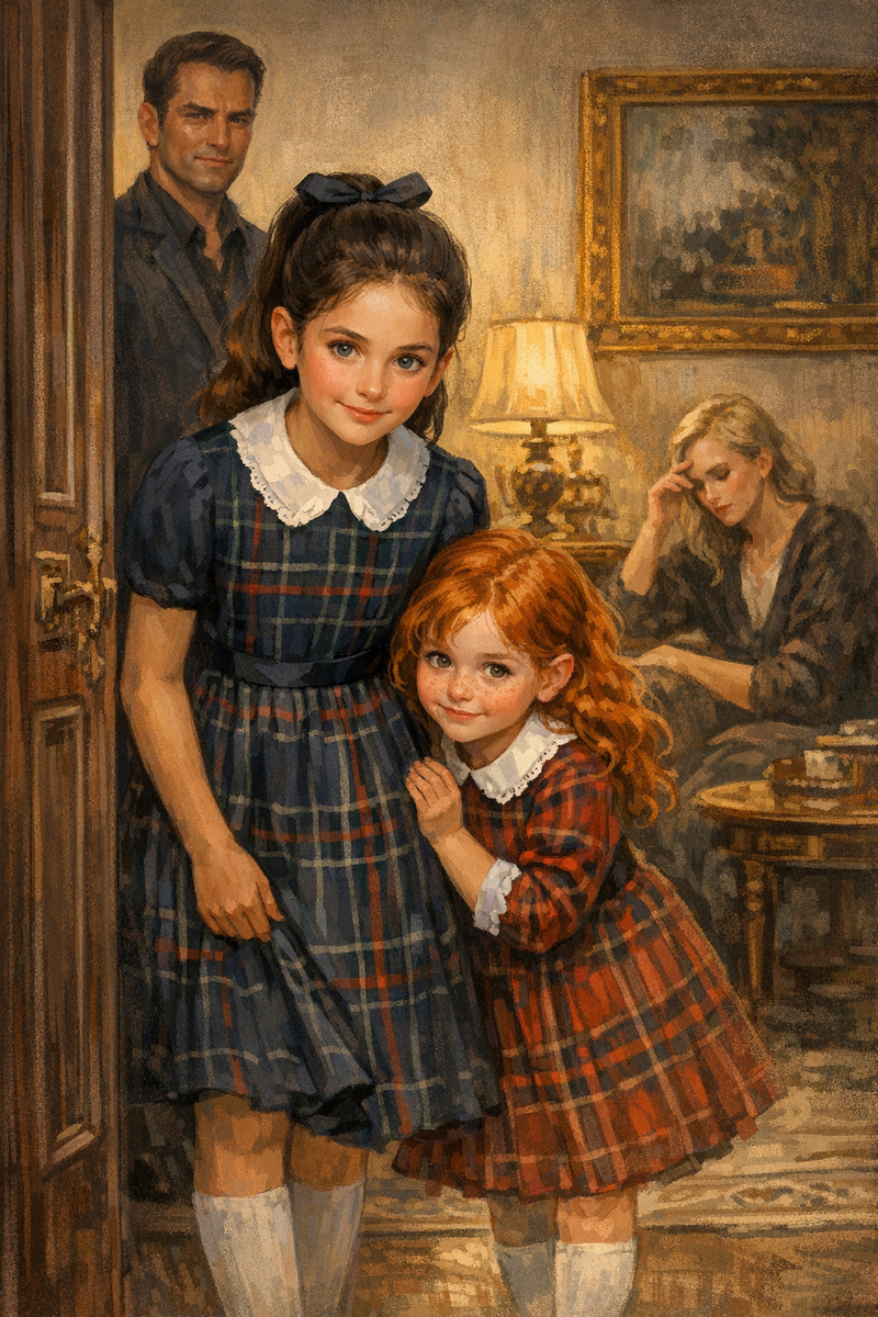 Елизавета, не глядя ни на кого, выходит из комнаты, и вскоре в дверях гостиной появляются две её дочери. Они оказываются удивительно воспитанными и симпатичными девочками, одетыми в аккуратные клетчатые платья с белыми воротничками. Только разительно не похожими друг на друга, как будто из разных сказок. Старшая, Ольга, – смуглая, с яркими, как летнее небо, голубыми глазами и тёмно-каштановыми, гладкими волосами, аккуратно забранными в высокий хвост. Младшая, Людмила, – словно натуральное солнышко. Рыжая, с озорными медными кудряшками, рассыпанными по плечам, и с множеством веснушек, рассыпанных по носу и щекам.