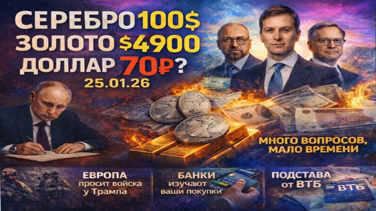 Сегодня разберём, что происходит с мировыми рынками, почему Европа часами умоляла Трампа прислать войска, и как банки теперь следят за вашими покупками в магазинах. Позже объясню, почему снижение ставок по кредитам от ВТБ - это не подарок, а расчёт. По ходу выпуска будет один факт, который перевернёт ваше представление о том, кто на самом деле богатеет в кризис. И в конце скажу конкретно: что отслеживать и что делать прямо сейчас - это реально влияет на ваш кошелёк.