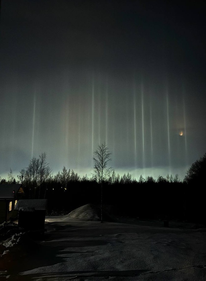 Минувшей морозной воскресной ночью в ряде районов Ленобласти наблюдались световые столбы