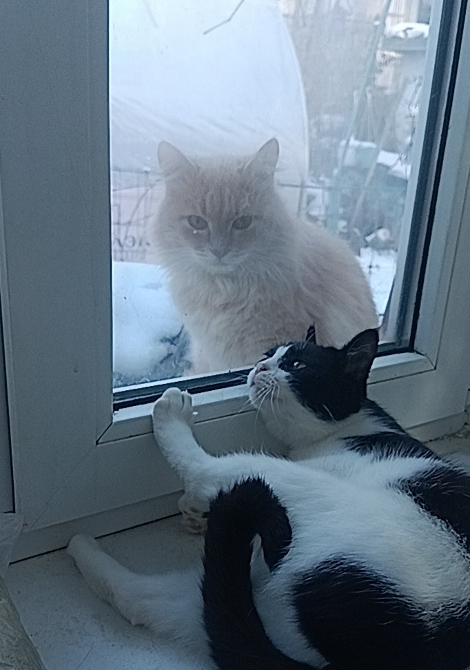 Пока Юкка свободно гуляла по дому, Счастьик дежурил снаружи: