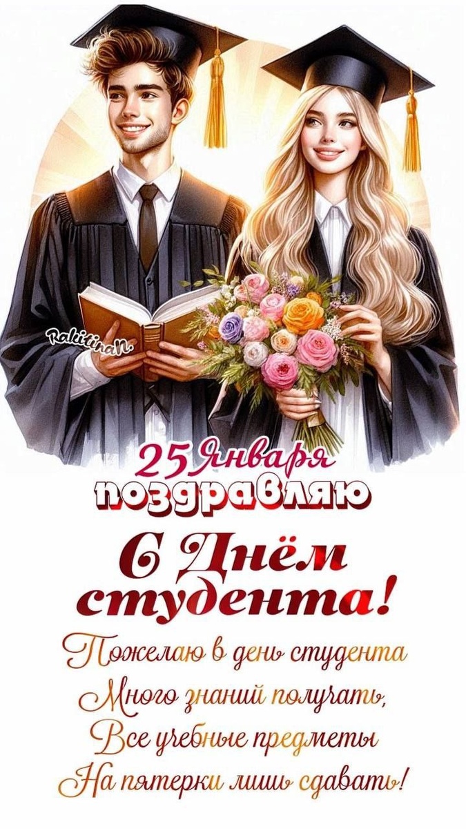 ! 🏫👩🎓🎉 Пусть ваша студенческая жизнь будет такой же яркой и насыщенной, как фейерверк! Желаю легкого усвоения материала, беззаботных сессий и множество приятных воспоминаний. 🍀😊 🌹 Отдельно поздравляю всех Татьян с Татьяниным Днём! 💐 Желаю вам море цветов, улыбок и теплого весеннего солнца в душе! Пусть радость, счастье и любовь сопровождают вас ежедневно!🥰🌹 #ДеньСтудента и #ТатьянинДень