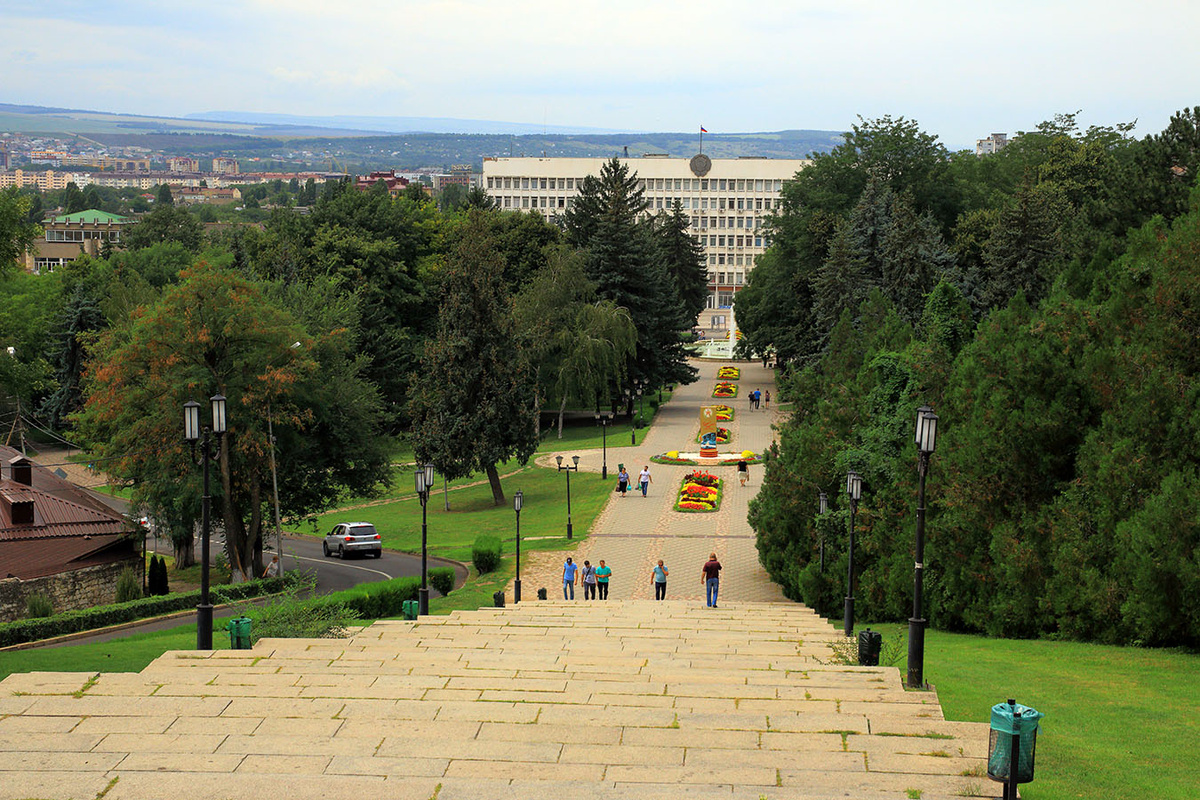 Пропущу события с 17-го по 19 августа и вернусь к ним позже, продолжив рассказ о наших прогулках по Пятигорску. Фото утро 20-го началось с разборок пятигорского криминалитета. А мы отправились бороздить просторы Пятигорска Памятник генералу Ермолову М.Ю. по прежнему с грустью взирал на городскую суету. Я был уверен, что Пятигорск неразрывно связан с именами Пушкина и Лермонтова и с удивлением открыл, что и для Л.Н. Толстого он был не чужд. Впрочем, судя по мемориальным доскам на многих домах, писательскую братию сюда тянуло не шуточно. Воробьянинов у Кофейни Гукасова все так же рассказывал про "«Месье, же не манж па сис жур. Гебен мир зи битте этвас копек ауф дем штюк брод..". В это утро ему мало кто верил и особой популярностью он не пользовался. Лермонтовская галерея. Китайская беседка. Грот Дианы От Грота Дианы мы поднялись вверх к Китайской беседке а от нее к птичке клюющей змейку. Т.е. к орлу, снижающему популяцию гадов, населяющих окрестные леса и поля. от птички мы по лестн