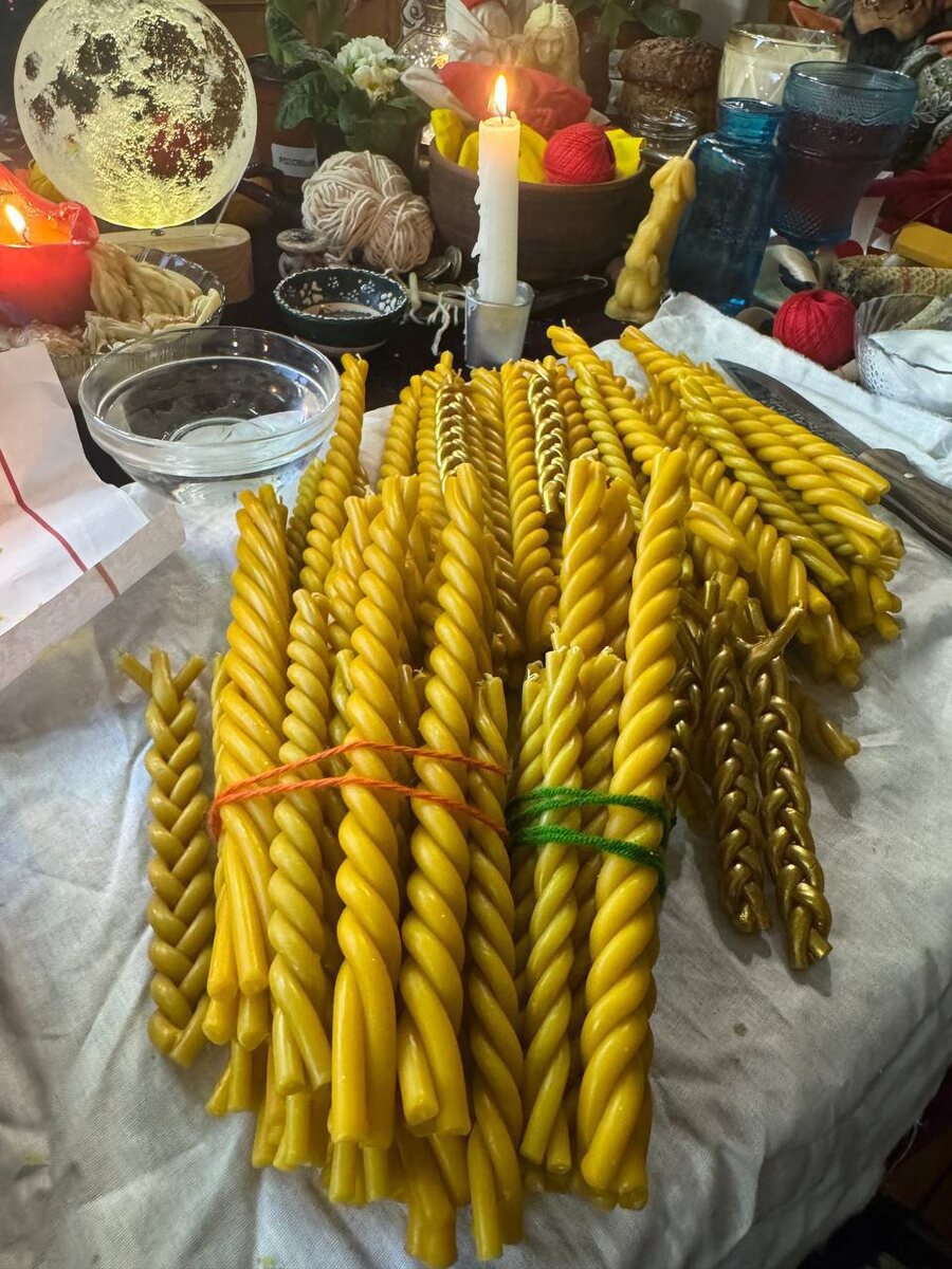❤️🔥 ТВОРИМ ВМЕСТЕ 2-го февраля в 11.00 по мск! Кто идет только на мастер класс «ВЕДЬМИН ОГОНЬ». ⚡️Суть - ускоряют любые практики многократно, сами по себе самодостаточны для любых ритуалов и обрядов на чистки, реализации, и исполнение желаний. Кто идет только на мастер -класс заранее приготовьте восковые неокрашенные свечи для волшебных ГРОМНИЧНЫХ СВЕЧЕЙ! Будет делать на весь год запас. Восковые, не освященные! Можно заказать в интернете на разных ресурсах. Свечи нужны не цветные, а именно желтые, некрашеные. Высота от 15 см и выше. Маленькие, средние, высокие от 25 см! Можно золотые восковые и с золотыми вкраплениями. Большие пойдут на большие скрутки. Должны гнуться, не ломаться. Свечей МНОГО! 💥Ценность мастер-класса 5555 руб. По вопросам участия писать в ЛС! ☀️Мастер класс будет сразу доступен будет в записи. Но эти Свечи делают 2-го февраля и в крайнем случае 15 го февраля, на Сретенье.