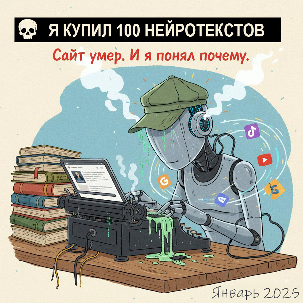 💀 Я купил 100 нейросетевых статей за копейки. Через месяц сайт «умер»