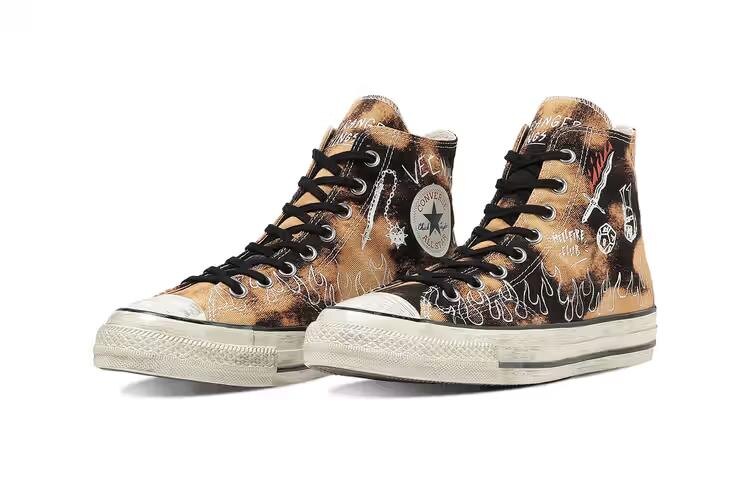 🔥 Stranger Things x Converse «All Star Aged 87 Pack» Коллекция построена на винтажном силуэте All Star Aged и выглядит так, будто пары действительно прожили время с 1987 года. Именно там разворачиваются первые сезоны сериала. Самой выразительной можно назвать версию, посвящённую Hellfire Club. Ручные наброски по всему канвасу и DIY-настроение делают её главным героем всей линейки.