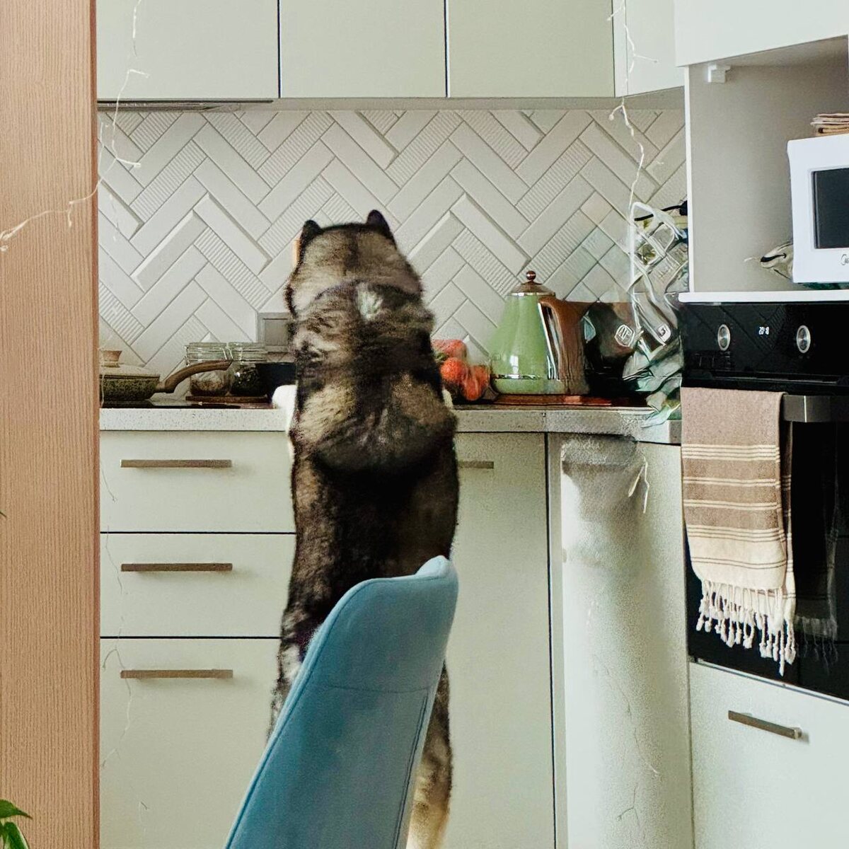 тихим воскресным утром любимый псын готовит завтрак