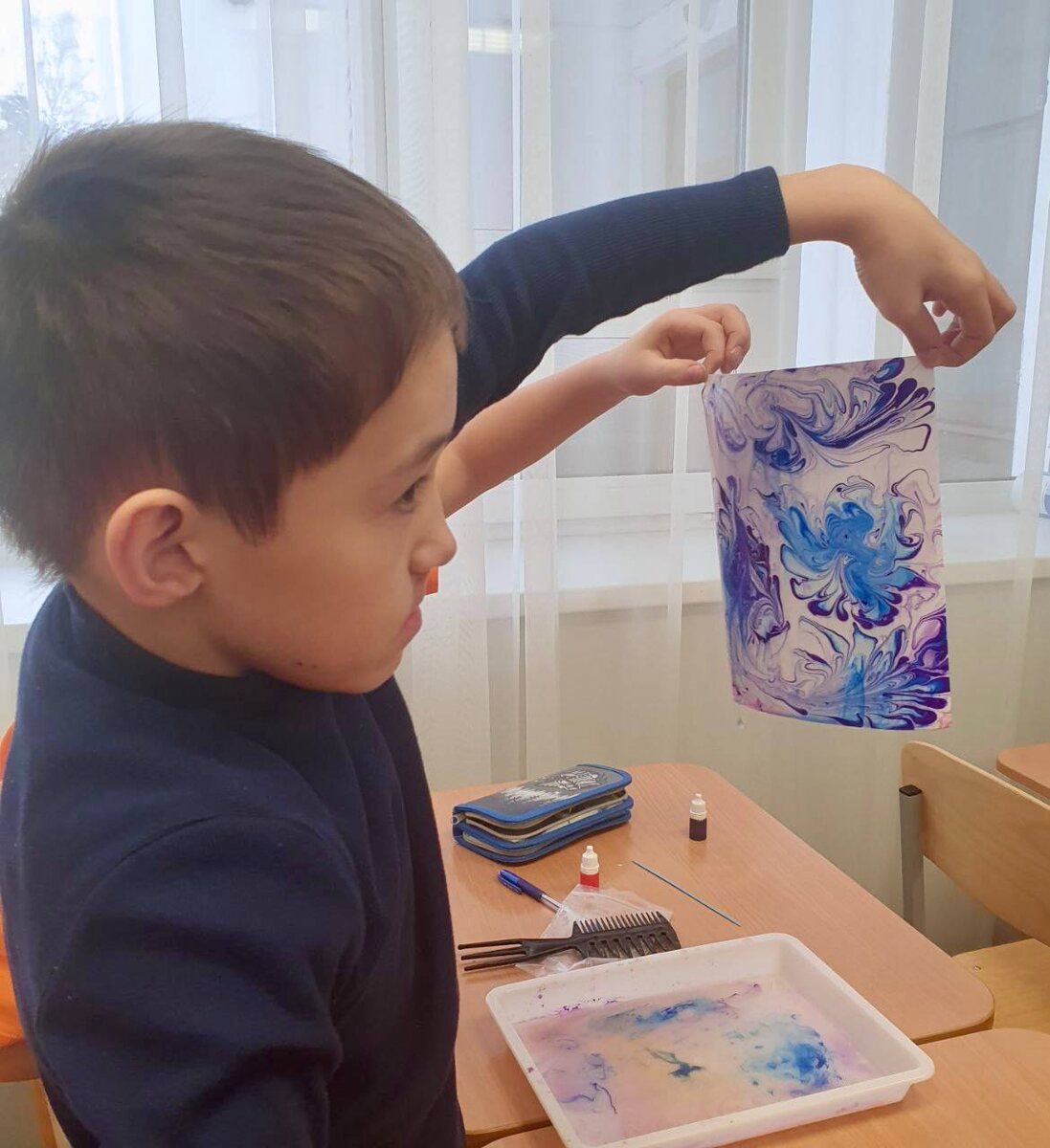 Ребята из группы комплексной реабилитации попробовали рисовать не на бумаге, а… на воде. Краски не растворяются в ней, а остаются на поверхности. Затем при помощи палочки или шила формирует узор из расплывающихся пятен краски. Наши художники с замиранием сердца наблюдали, как краски растекаются по водной глади. Затаив дыхание, каждый аккуратно укладывал лист на поверхность — и в этот момент происходило маленькое чудо. На бумаге появлялся уникальный отпечаток, который невозможно повторить даже самому автору, — отмечают в центре. Ставим ❤️ за такие красивые, неповторимые работы.