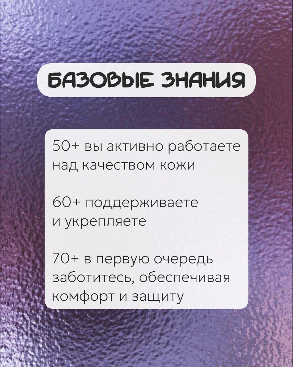 Важно: наносим средства похлопывающими движениями, не растягивая кожу. Не забываем про зону шеи и декольте. И если появилось раздражение, то упрощаем уход до очищения и увлажнения Уход 50+ Главные ингредиенты: витамин С, ретинол (низкая концентрация), пептиды, гиалуроновая кислота, мягкие AHA-кислоты (молочная) 1. Понедельник (утром): очищение пенка Mixit с витамином С → Тонер Art&fact с пептидами → Сыворотка Icon Skin с витамином С и пептидами → Крем для глаз Гельтек с пептидами → Легкий крем Librederm Вечер: двойное очищение молочко Green Mama + пенка Mixit → Тонер Art&fact с пептидами → Сыворотка True Alchemist с гиалуроновой кислотой → Крем для глаз Гельтек с пептидами → Ночной крем Алтея с ретинолом 0,1% 2. Вторник: повторить утренний ритуал. Вечером заменить крем с ретинолом на питательный крем Premium 3. Среда: очищение → Тоник → Мягкий ферментативный пилинг Premium (наносим на 5-10 мин) → Увлажняющая сыворотка True Alchemist → Успокаивающий крем Premium 4. Четверг повторяет в