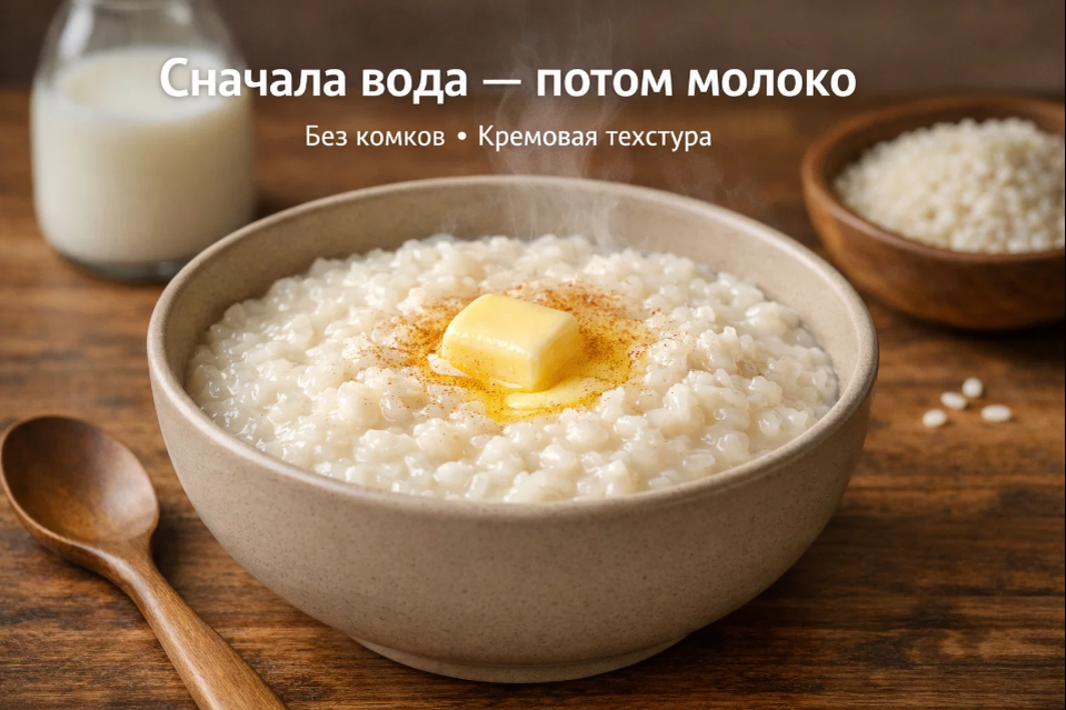 Теперь, когда мы разобрались в теории, пора перейти к практике. Этот рецепт основан на методе предварительной варки риса в воде и гарантирует отсутствие комков при идеальной кремовой консистенции.