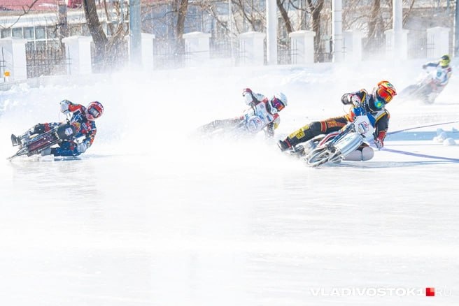 температура совсем не помеха для езды «с ветерком». Это второй ледяной спидвей во Владивостоке, возрождённый после долгого 40-летнего перерыва. Огромные шипы на шинах мотоциклов превращали лёд стадиона в мелкое ледяное крошево, заслоняя обзор всем, кто оказался позади победителя. Смотреть на это было одновременно и интересно, и страшно. А зрителей было хоть отбавляй — с началом гонки трибуны быстро заполнились, люди принесли с собой чай и пледы, чтобы согреться. Погода и на этот раз не смилостивилась, температура воздуха держалась на уровне пятнадцати градусов со знаком минус. Мы побывали у самой кромки ледяного поля, чтобы заснять, как двигаются те, кто практически ложится на лёд, чтобы лететь быстрее. Больше фото смотрите на нашем сайте по ссылке. 🟥Подписаться в Telegram | Предложить новость ➡️Подписаться в MAX