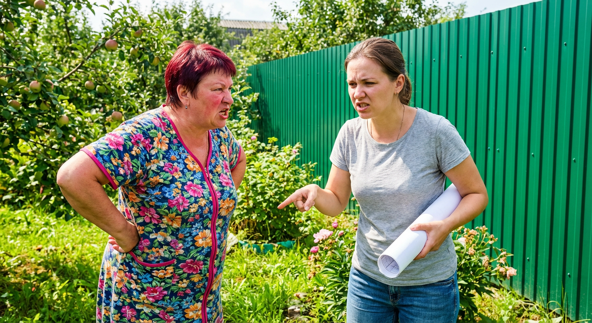 Ольга растерянно моргала, глядя то на соседку, уперевшую руки в боки, то на новенький, сверкающий ядовито–зеленой краской профнастил. Ситуация казалась настолько абсурдной, что первые минуты она просто не находила слов. Они с мужем не были на даче всего три недели – отпуск, море, потом домашние дела. А когда приехали открыть сезон закрытия огорода и собрать последние яблоки, их ждал сюрприз.