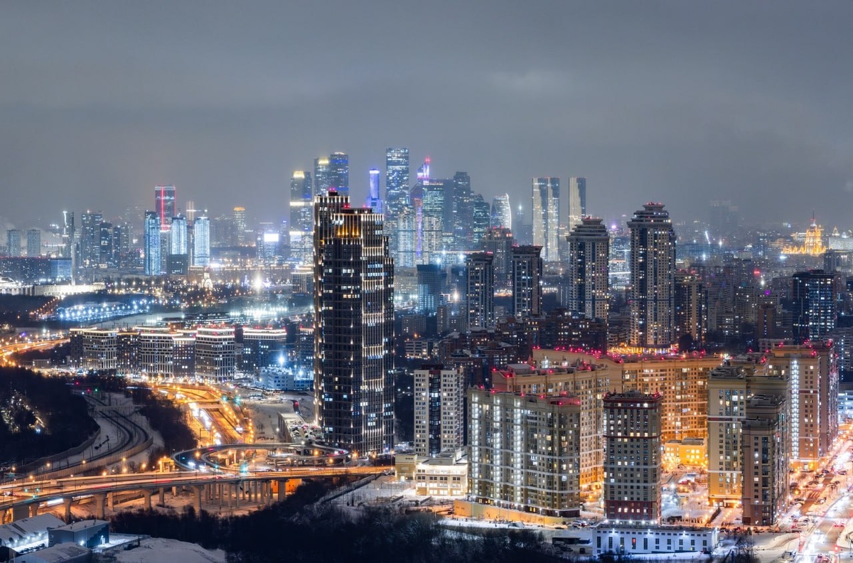 На фотографиях запечатлены виды, открывающиеся на высотную архитектуру Москвы со стороны жилого комплекса «Событие-4