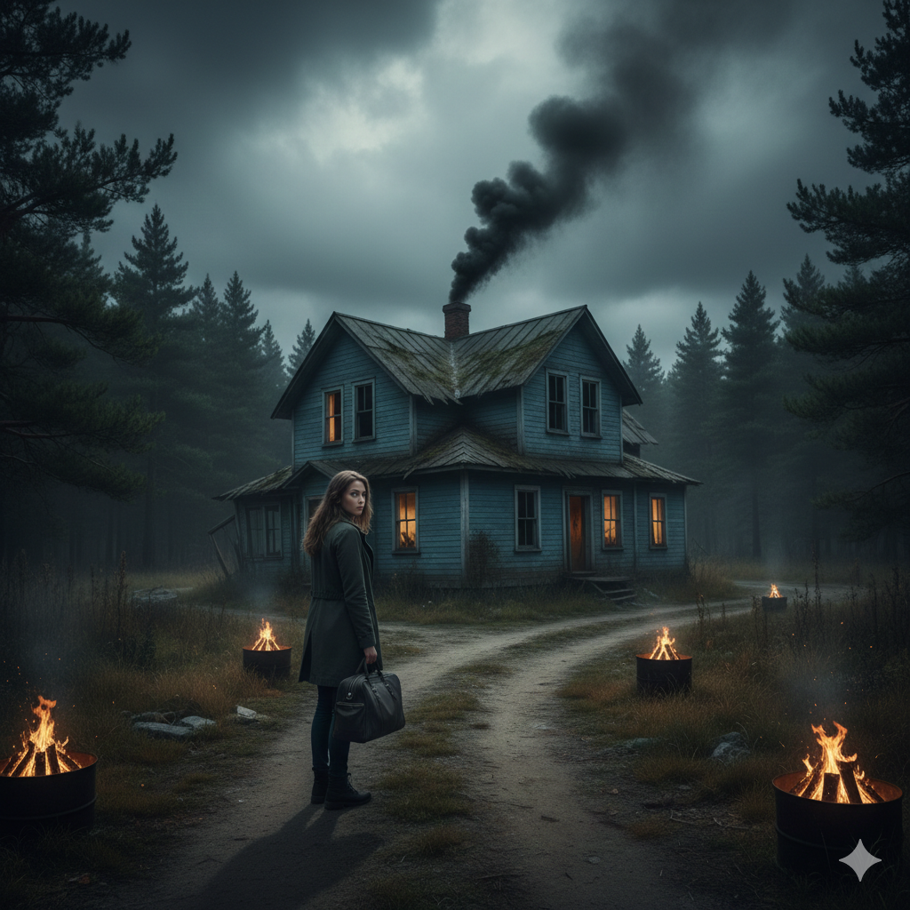 Я смотрела на облупившуюся синюю краску на воротах. Над головой распласталось низкое октябрьское небо, тяжёлое, цвета мокрой золы. Воздух в посёлке «Светлый путь» был густым и терпким — пахло прелой хвоей, речной сыростью и дымом из далёких печей. Здесь даже ветер шумел иначе: не свистел, а глухо рокотал в верхушках старых сосен, словно предупреждал о чем-то.