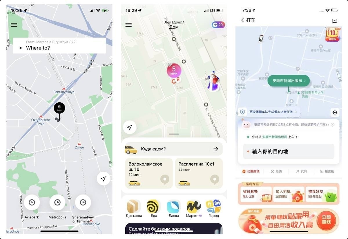 🇺🇸 Uber 🇷🇺 Yandex Go 🇨🇳 DiDi
