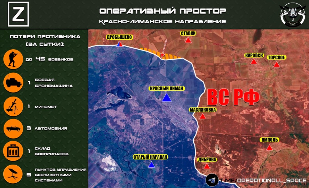🇷🇺На Красно-Лиманском направлении ВС РФ продолжают наступление с севера в направлении города Красный Лиман