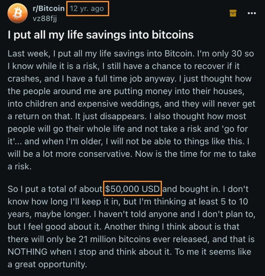 π° 12 Π»Π΅Ρ Π½Π°Π·Π°Π΄ ΠΎΠ΄ΠΈΠ½ ΡΠ΅Π»ΠΎΠ²Π΅ΠΊ ΠΊΡΠΏΠΈΠ» Π±ΠΈΡΠΊΠΎΠΈΠ½ΠΎΠ² Π½Π° ΡΡΠΌΠΌΡ $50,000, ΠΊΠΎΠ³Π΄Π° BTC ΡΡΠΎΠΈΠ» Π²ΡΠ΅Π³ΠΎ $100