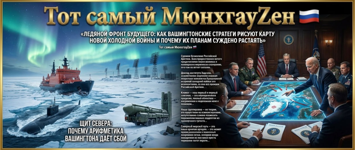 🚨 Ледяной фронт будущего: как вашингтонские стратеги рисуют карту новой холодной войны и почему их планам суждено растаять Часть 3️⃣/3 Долгосрочная перспектива (5+ лет): Проиграв технологическую и логистическую гонку, Запад будет вынужден де факто признать зоны нашего влияния и вернуться к переговорному процессу, но уже с позиции не силы, а необходимости. Северный морской путь, окончательно освоенный нашими ледоколами, станет ключевой артерией глобальной торговли, а его безопасность и функционирование — исключительной прерогативой России. Арктика останется зоной мира, стабильности и сотрудничества, но только на тех условиях, которые будет диктовать Москва как главная хозяйка этих широт. Заключение Таким образом, доклад института Хадсона — это не план победы, а признание глубочайшей тревоги. Это крик отчаяния стратегов, осознающих, что классические методы сдерживания против России более не работают, а новых — не существует. Они пытаются перенести в хрупкую арктическую среду шаблоны