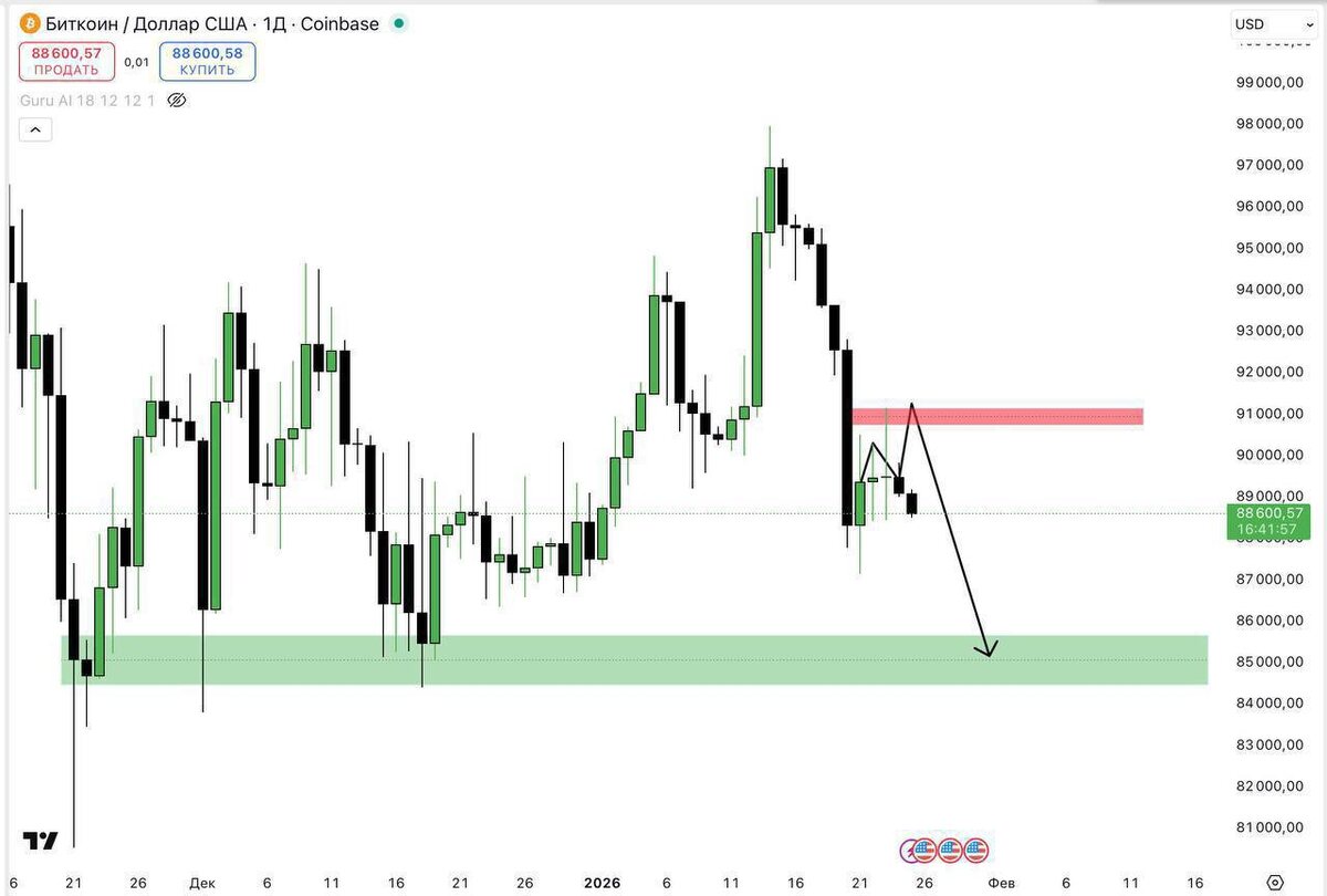 ! 📉 На фоне слабых откупов за ночь — новый шаг вниз. Коррекция идёт маленькими, но уверенными шагами. В ближайшие дни ждём финального выноса в зону $86 000 - $85 000! Всё идёт строго по нашему сценарию. 🎯 #Bitcoin #BTC #Анализ #альтсезон BusineesEconomyBlockchain l Bybit