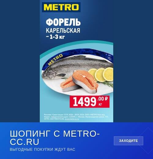 ! 😍 Загляните в METRO — там столько всего интересного и по выгодным ценам! Нашел крутые промокоды, с ними покупки станут ещё выгоднее. Переходите по ссылке и проверяйте сами: https://ya.cc/8co6L2 КОРЗИНА20 — скидка 20% на первый заказ до 31 января. Реклама. Информация о рекламодателе по ссылке. #скидки #промокоды #metro